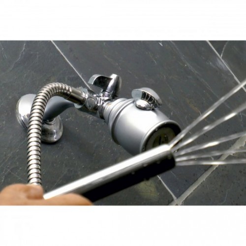 This is a very neat enema system. Its douche and enema nozzle is outfitted for use as a shower attachment. The Shower Enema Kit comes with two nozzles, one is 5 inches and the other is 3.5 inches. It also comes with a 6 foot metal hose. One end of the hose screws into your shower, the other end is where you attach your choice of nozzle. Where the Shower Enema Kit connects with your shower it has a valve that directs the water either through the nozzle and into you or to the shower head. Use the shower knob to regulate the force of water through the hose.