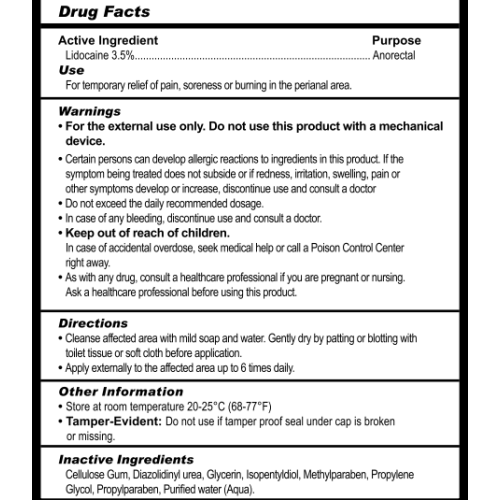 Note: Contains 3.5 percent lidocaine as active ingredient.