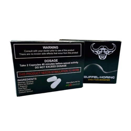 Buffel-Horing Erection Booster - boost your erection to the next level. In just 40 minutes after taking the recommended dosage of 2 capsules, you may experience: