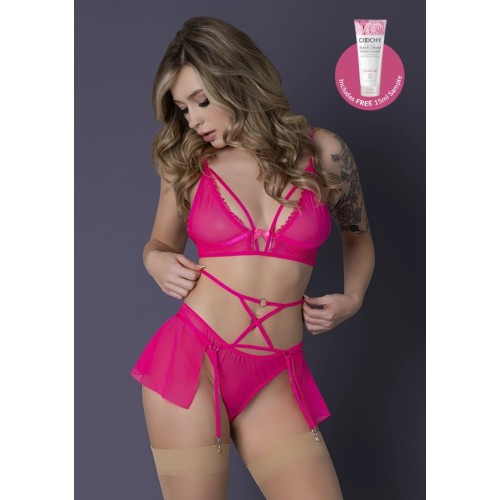 Magic Silk Pink Kink Bralette, High Leg Panty & Garter Skirt Set