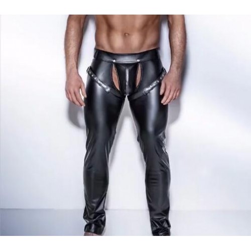 Sexy Men Faux Leather Open Crotch Erotic Latex Pants PVC Night Club Men Straps Trousers