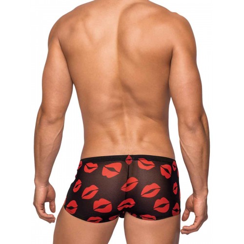 You’ll be the very definition of kissable in this sexy short. The supple mesh is decorated with playful puckered lips, and the design features a low-rise waist, square-cut silhouette, high-cut legs and a comfort-fit pouch. If you’re daring, use it as a where-to-kiss map.
