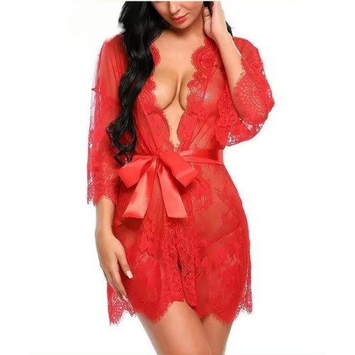 With its flattering silhouette and soft texture, this robe is as comfortable as it is beautiful. Whether you're lounging at home or getting ready for a night out, the red lace robe effortlessly elevates any ensemble.