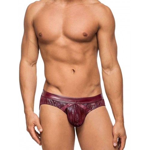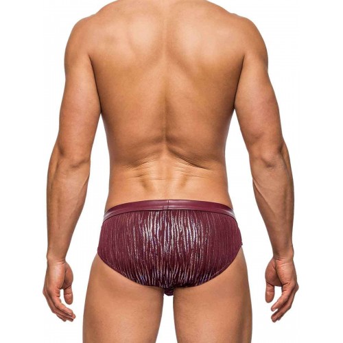 You’ll shine bright in this men’s fashion bikini. The shimmering metallic stripes add a stylish flair to the textured fabric. We guarantee comfort in this dazzling design because of it supportive front coverage, two-inch sides and supple faux-leather accents.