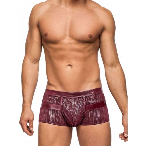Set the tone of your day while you dazzle in this sexy men’s trunk. The highlight of this design (besides your derriere, of course!) are the shiny stripes infused into soft textured fabric. The low-cut waist, high-cut legs and enhancing pouch ensure no comfort is compromised with this sexy mini short. Comfort. Quality. Fashion. The Male Power way.