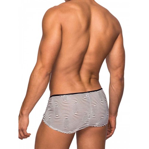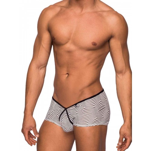 This is the perfect playful trunk to add to your underwear drawer. The Tranquil Abyss Micro Mini Short stands out because of the zebra print effect created from the black mesh infused into the soft and stretchy polyester blend. The sexy ultra-low V-cut waist, high-cut legs and enhancing pouch complements your body. Allow yourself to embrace your sexy by wearing this vibrant trunk.