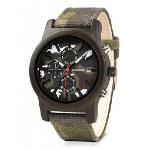 Perfect Gift: Wooden Camo Military Stylish watch with a unique presentation box, a great gift choice for any man