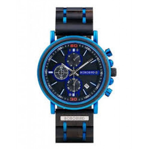- Bracelet: Adjustable length, made of Ebony wood and Blue stainless steel